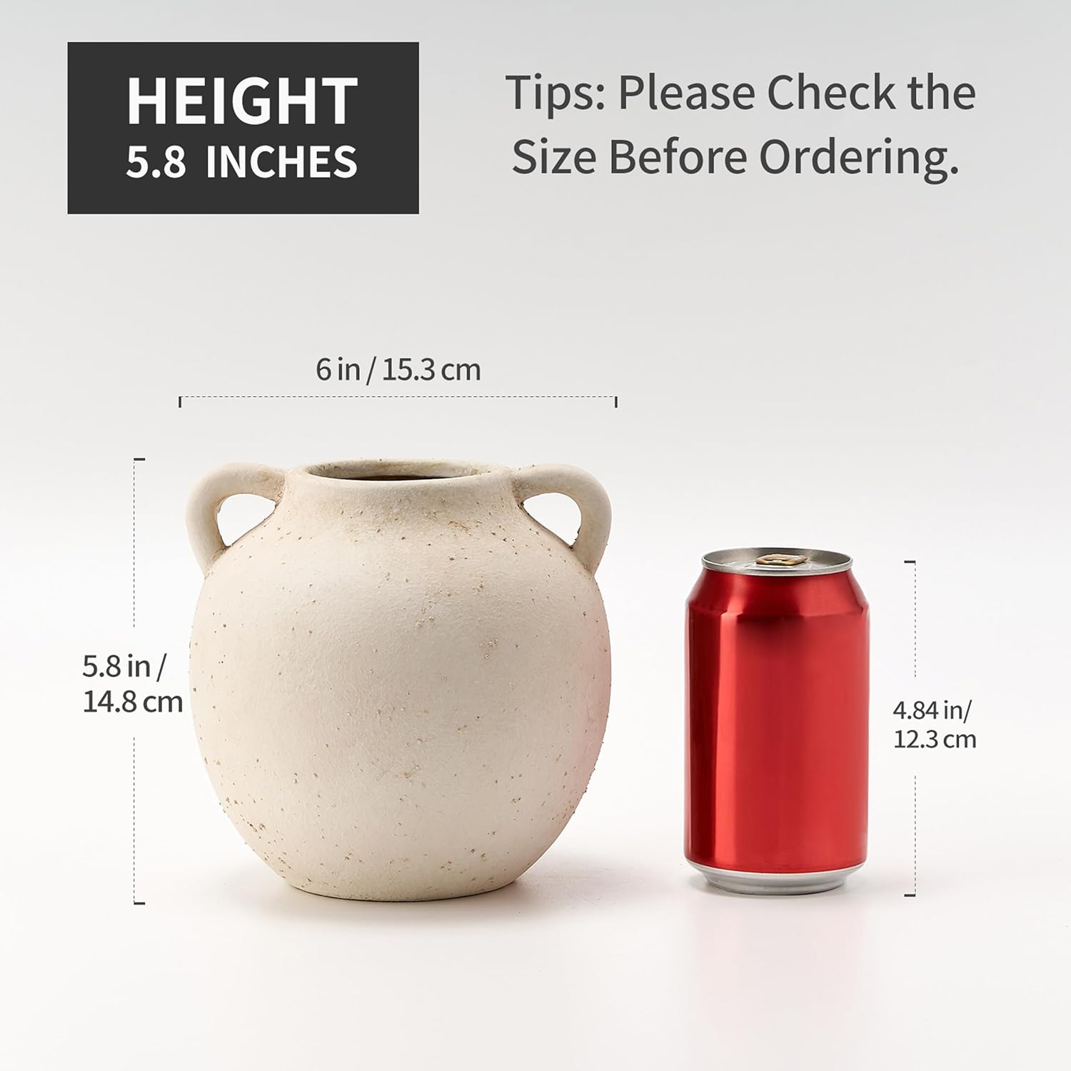 Ceramic Vase, 5.8 Inch Terracotta Vase with Handles, Boho Decor Decorative Vase, Rustic Vase for Home Decor, Farmhouse, Living Room, Table – Beige