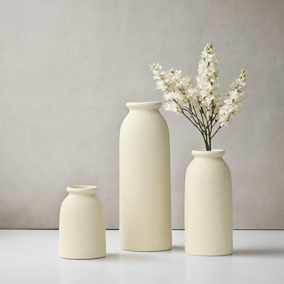 - Decorative Vase Set: Includes 3 small ceramic vases in different sizes, perfect for displaying pampas grass, dried flowers, or as standalone decor pieces.