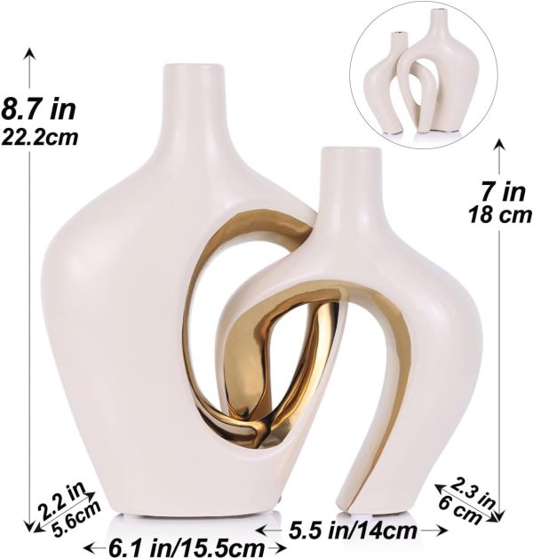 - Exquisite White Gold Ceramic Craftsmanship: Our set of 2 white gold ceramic vases showcases a blend of timeless tradition and modern aesthetics, meticulously handmade to ensure each piece radiates elegance and high quality